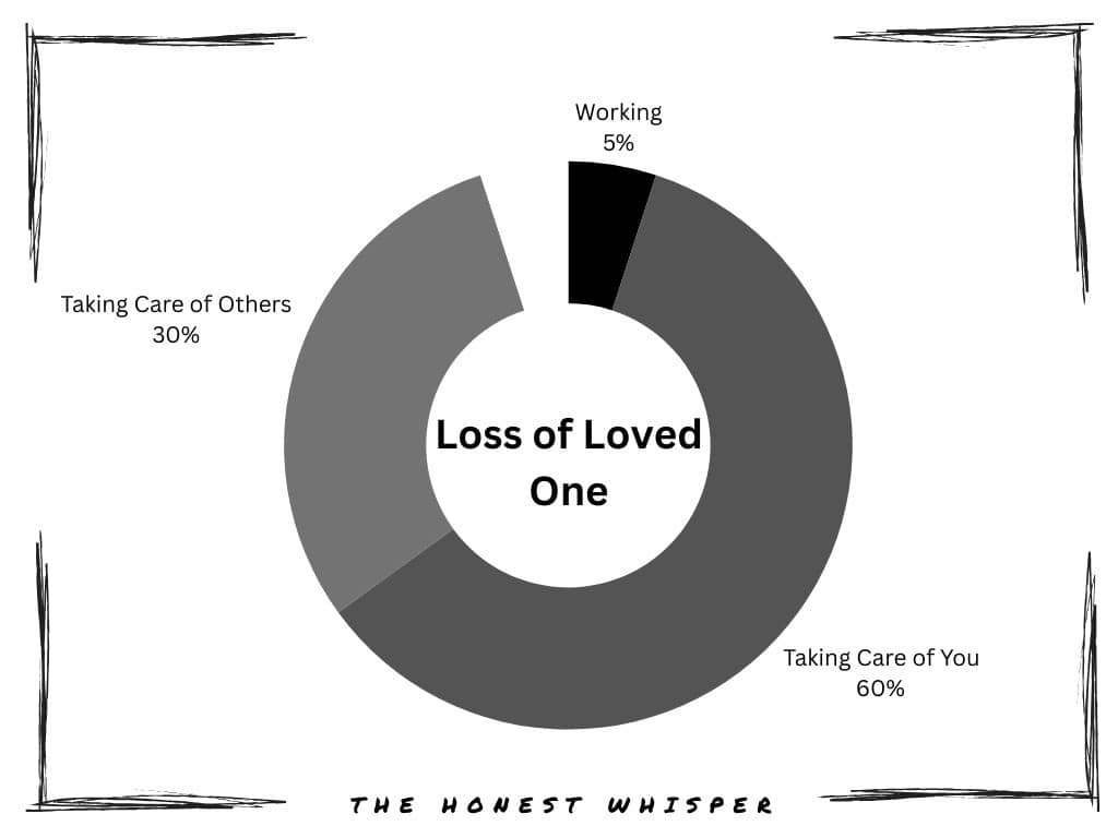 There are many different opinions on what makes up a balanced life. I think we all need different things and quantities at different points in our lives. Learning how to recognize when and what I need is probably the most difficult part for me. I’d like to share what a balanced life looks like for me, even though our experiences may differ. Please keep in mind that these are never equally balanced for me and fluctuate. I’ve analyzed how I spend my time each week across different life areas. I try to have them adapt as best I can to whatever is going on in my life. Work often provides time off during grief, allowing you more time for self-care. Listen to your body’s needs, even if it means some inconsistency. A balanced life for me consists of four factors: